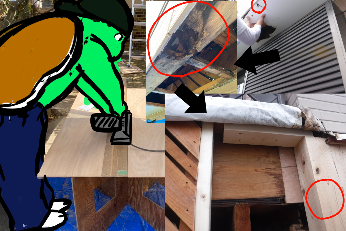 外壁やバルコニーや下屋根から水が回ってしまい、木が腐食している場合には大工工事が必要になります。